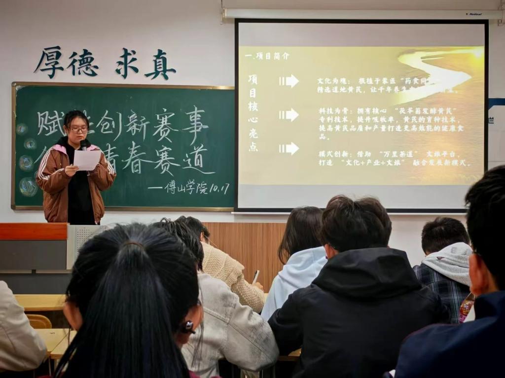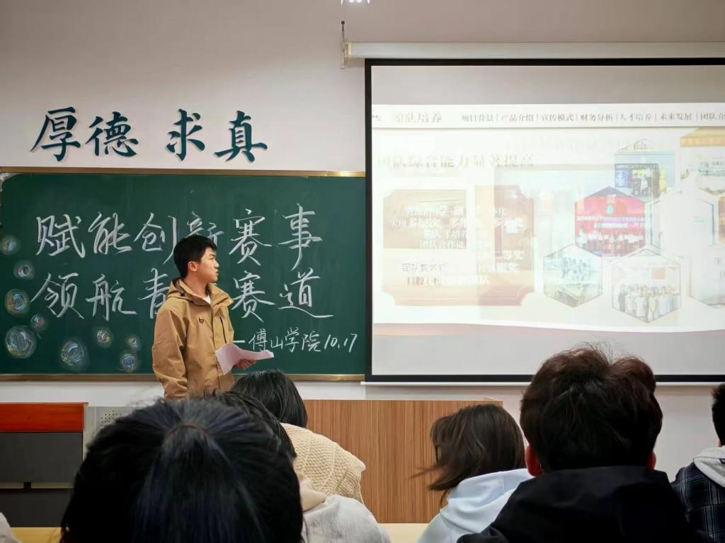 为激发学生创新创业活力,助力青年学子在赛事舞台绽放青春光彩,2025年10月17日,jinnianhui今年会在图文信息中心910教室成功举办“赋能创新赛事 领航青春赛道”大学生创新创业大赛宣讲会暨项目招新活动。活动设置经验分享、金奖项目展演及优质项目招新三大环节,为学子搭建起从学习经验到实践参与的成长桥梁,有效推动学院创新创业教育走深走实。