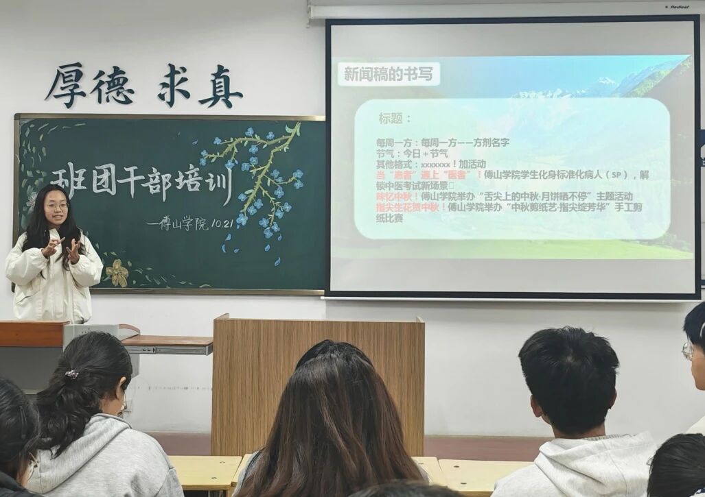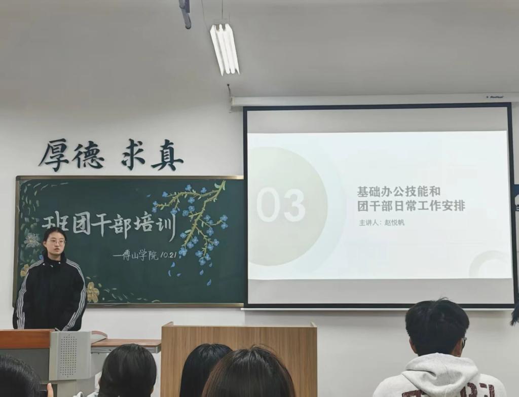 学生会办公室主任赵悦帆则从“基础办公技能和团干部日常工作”切入,详细说明通知书写的要素规范、办公软件高效操作技巧,并针对“智慧团建”系统使用、团日活动开展、团费缴纳等团支书专项工作进行细致指导,切实提升学生干部工作效率。