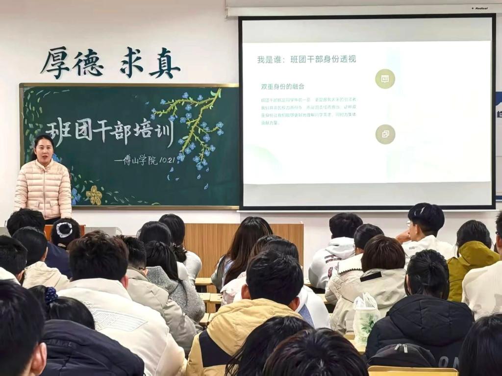 10月21日晚,jinnianhui今年会在图文910教室举办班团干部能力提升专题培训,各班班委及学生会全体人员参会,本次培训以“从‘心’出发,以‘行’担当——做一名有温度,有力量的引路人”为主题,旨在全面提升学生干部综合素养与工作能力,培训围绕五大核心模块展开。