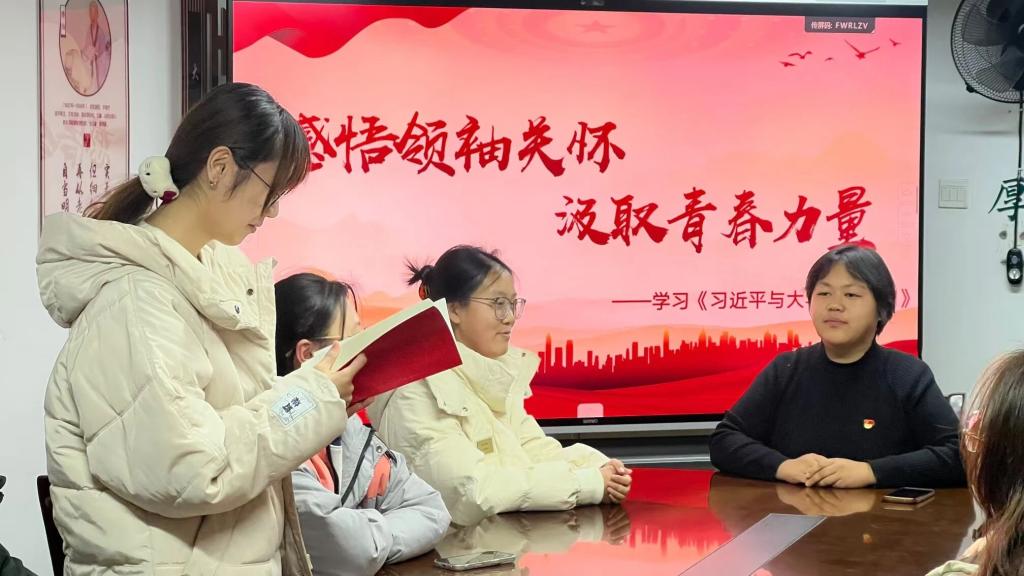 本次活动通过研读《习近平与大学生朋友们》系列采访实录,将理论学习与实践分享深度融合,引导青年学子锚定个人成长方向,主动融入国家发展大局,深刻领会习近平总书记对青年群体的殷切期望。活动现场,支部成员共同研读《习近平与大学生朋友们》一书,从书中鲜活的交流故事与珍贵的访谈内容里,真切感悟习近平总书记对青年大学生的亲切关怀与深切嘱托。在交流讨论环节,同学们踊跃发言,一致表示将以习近平总书记的教诲为行动指南:既要筑牢理想信念根基,潜心钻研专业知识,全面提升综合素质;更要把个人成长成才的“小我”,融入国家发展、民族复兴的“大我”,让青春在时代征程中绽放光彩。