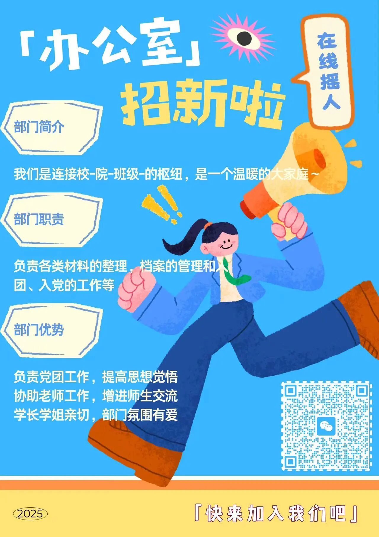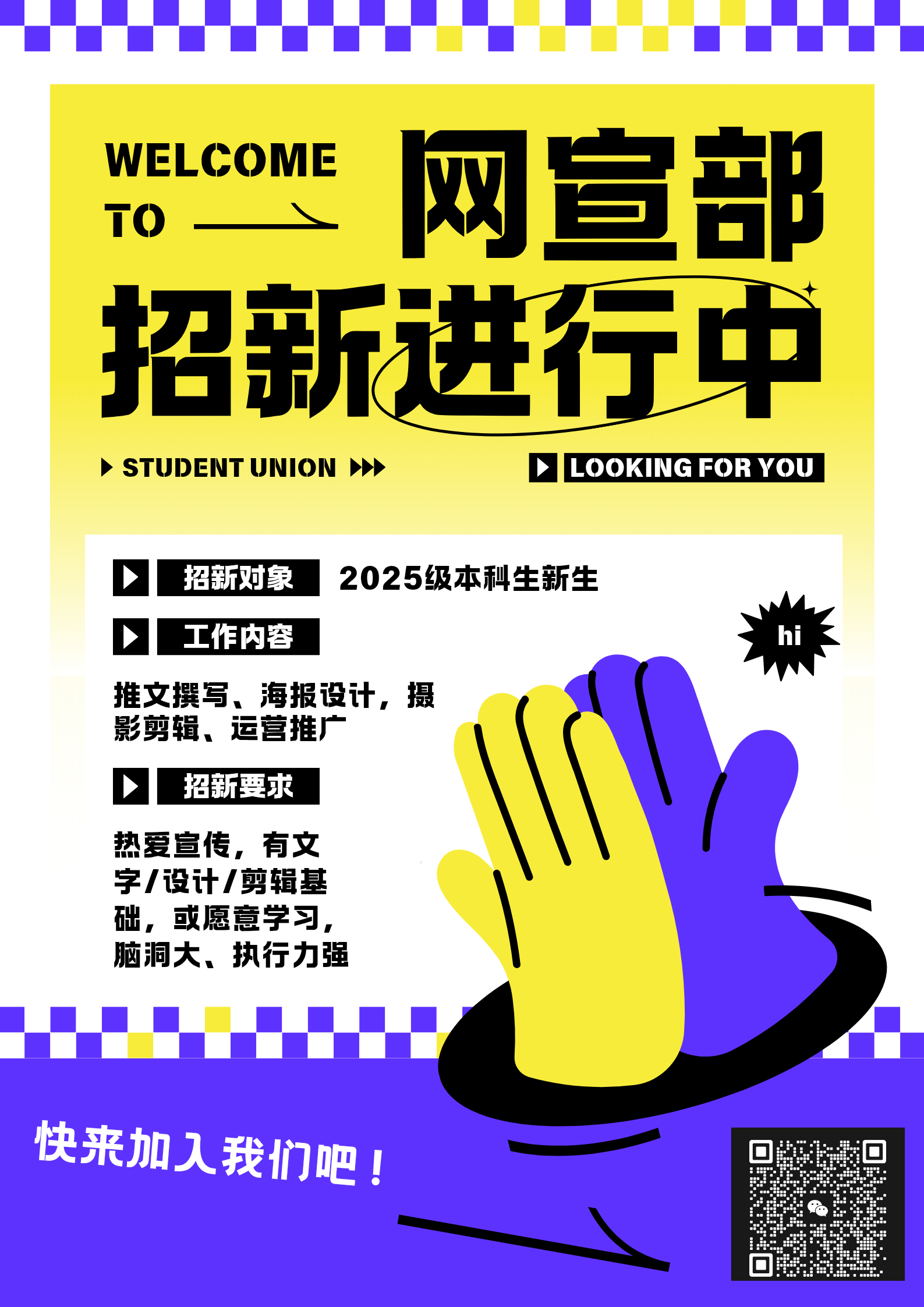 jinnianhui今年会网宣部招新啦!速来集合~宝子们看这里!✨我们负责学院宣传与官方平台运营,超有意思哦!加入能学推文、海报、短视频技能,还能跑活动、攒经验、拿综测加分,认识超多志同道合的小伙伴~零基础也完全OK!热烈欢迎每一位有创意的你加入,一起玩转校园宣传!