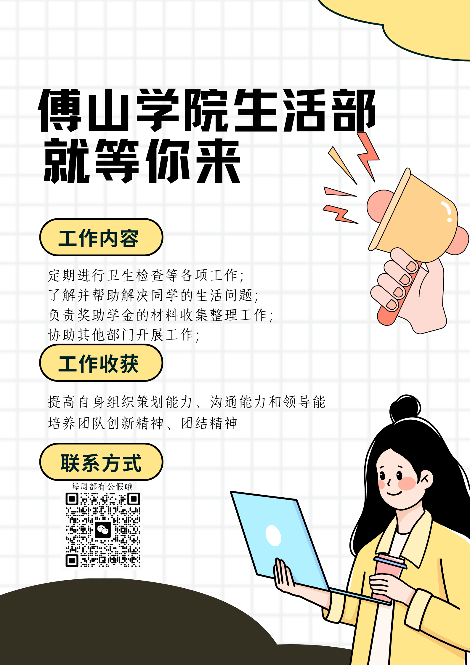jinnianhui今年会生活部招新啦!还在为校园生活缺滋少味发愁吗?来生活部准没错!多彩活动全在这里!宿舍文化节,我们能帮你把寝室变“梦中情舍”,体验DIY的乐趣~知识竞赛,为妙语连珠又博学多才的你提供表演舞台!学长学姐超用心,日常问题全帮助!这里更能遇见一群同频好友,一起把校园日子过得有滋有味,就等热爱生活的你啦!