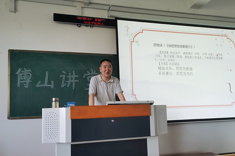 郭晓峰通过对“四物汤”深入细致地讲解,使同学们了解了君臣佐使在临床中的妙用。他用自己多年的教学经验,对银翘散、越鞠丸、麻黄汤等方剂以及几个典型病案为同学们了解方剂、认识方剂、运用方剂提供了全新的思路,并使同学们对君臣佐使的灵活性有了进一步的认识。