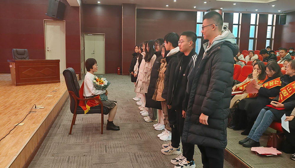 2023级中医学“5+3”一体化学生向导师敬献鲜花,并行拜师礼。