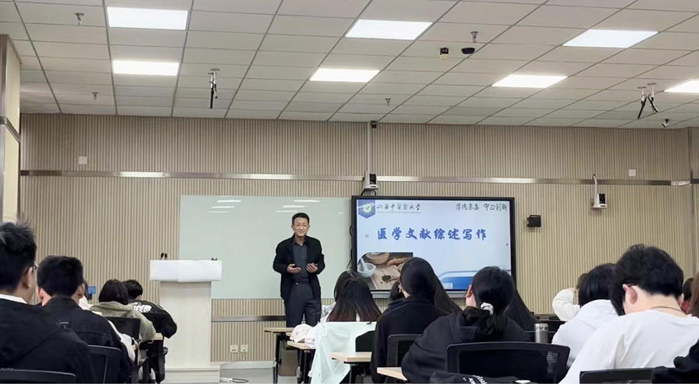王永辉介绍了文献综述的含义和特点,由浅及深的对文献综述需要解决的问题和包含的内容作了详细的阐述。以具体的医学文献综述为例,对其选题、参考文献查找和筛选进行了讲解,让同学们更加直观了解医学文献综述,初步掌握了撰写文献综述的方法和技巧。最后,王永辉提出“秉仁爱之志,承济世之术,怀敬畏之心,行规矩之事”与同学们共勉,希望同学们扎实基础,未来在学业上有所成就。