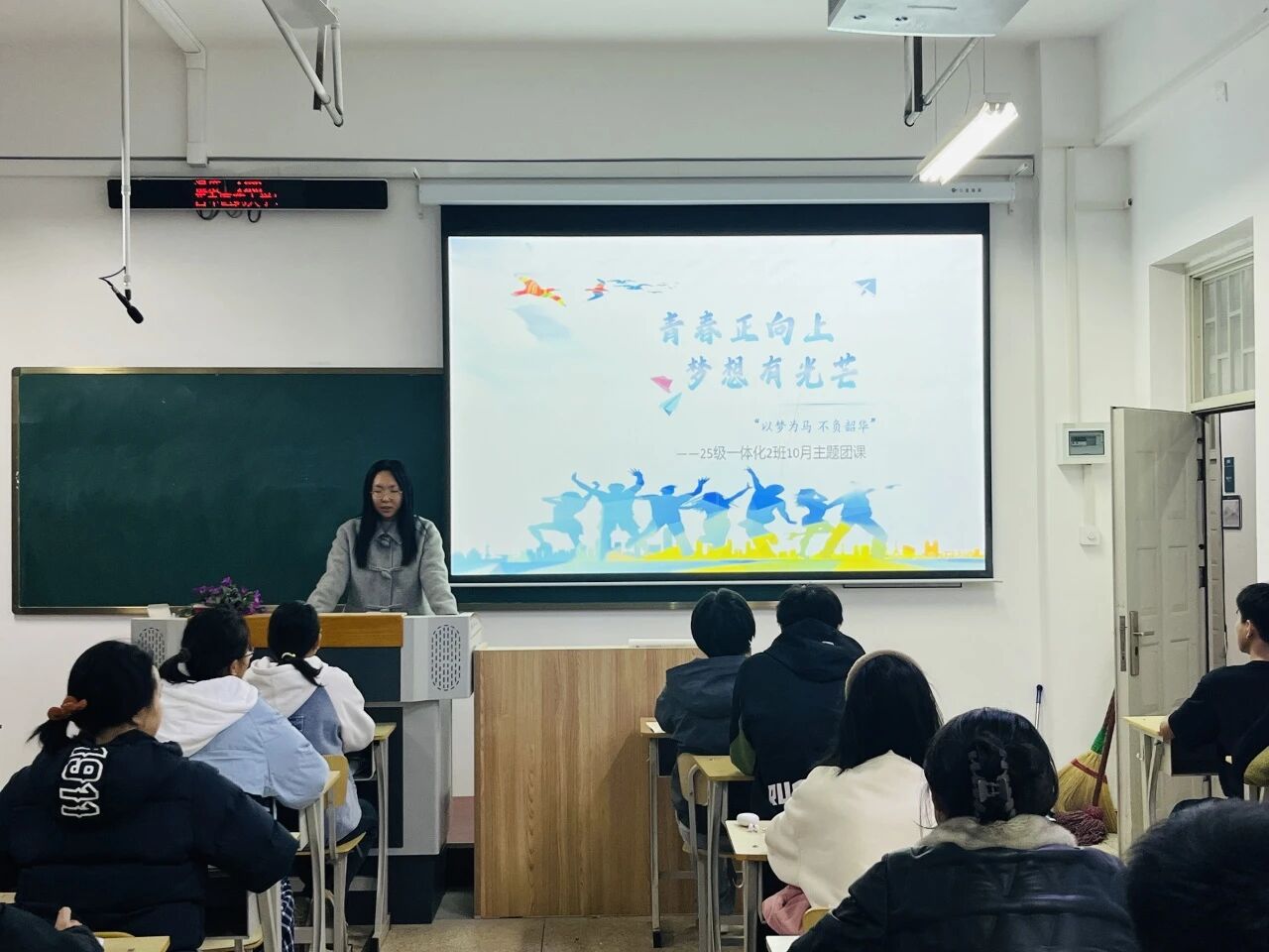 常思雨围绕青春正向上,梦想有光芒主题,阐述新时代青年树立远大理想的重要性,通过分享榜样经验、重温入团誓词、封存“梦想卡片”等环节,鼓励大家以饱满姿态追寻梦想,书写青春新篇章。