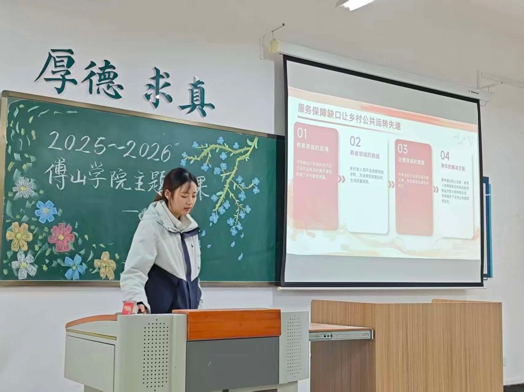 于冰冰以青年投身乡村振兴为主题,阐述乡村发展从“外部输血”转向“自身造血”的新阶段,强调青年是推动乡村发展的关键动能,并鼓励同学们结合自身特长,通过三下乡暑期社会实践活动参与乡村建设,实现青年成长与乡村振兴的“双向成就”。